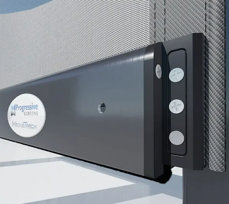 Unlike fixed track or zipper systems, MagnaTrack™️ is the only system in the world that uses magnetic fields to dampen the impact of wind loads and flying debris while maintaining a flat and uniform screen surface appearance when deployed.