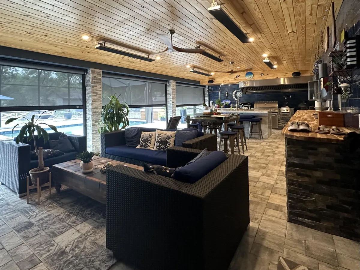 Jeff created every man's dream on his back patio. But, what he found out it was hard to keep it clean and protected. Not to mention the afternoon sun baked him off the patio about 3PM every afternoon.